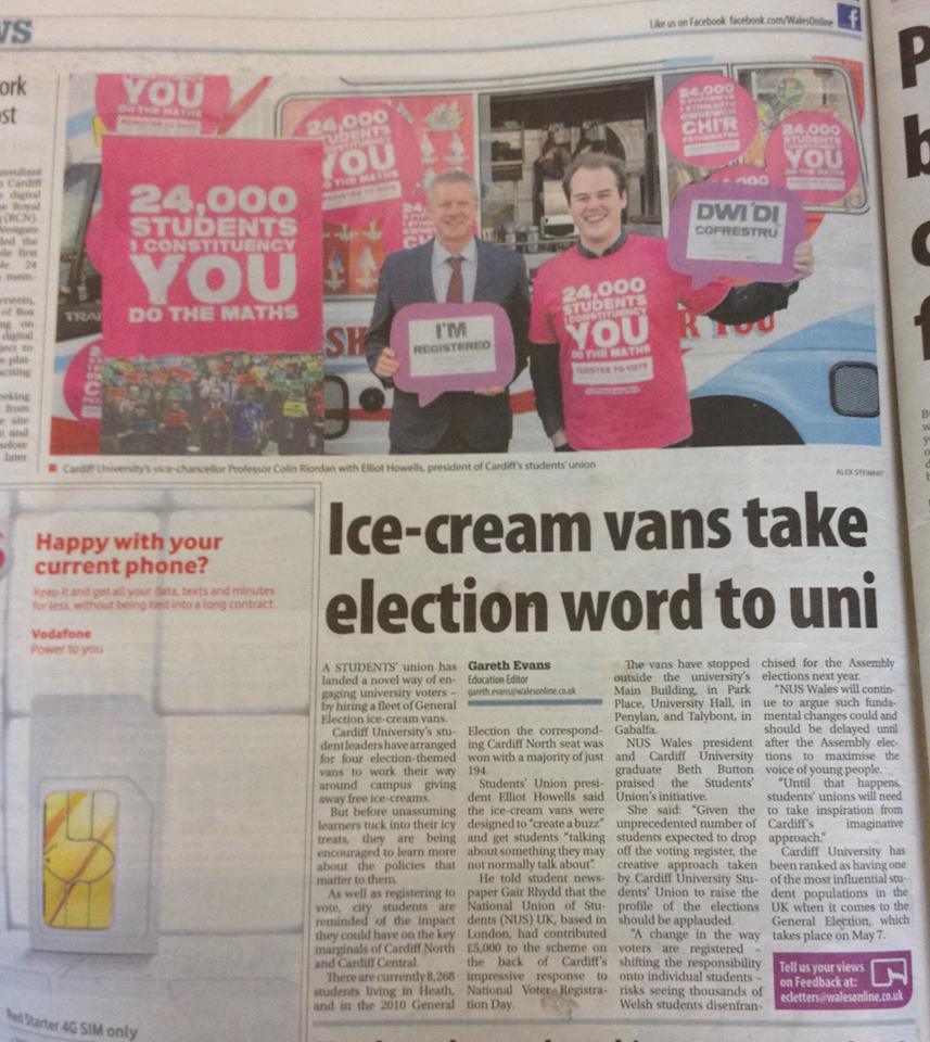 As a Welsh institution this all it forms a fantastic foundation for a similar campaign next year when the Assembly Elections arrive. By engaging students in this election, we will be able to harness that interest and build on it ahead of 2016.