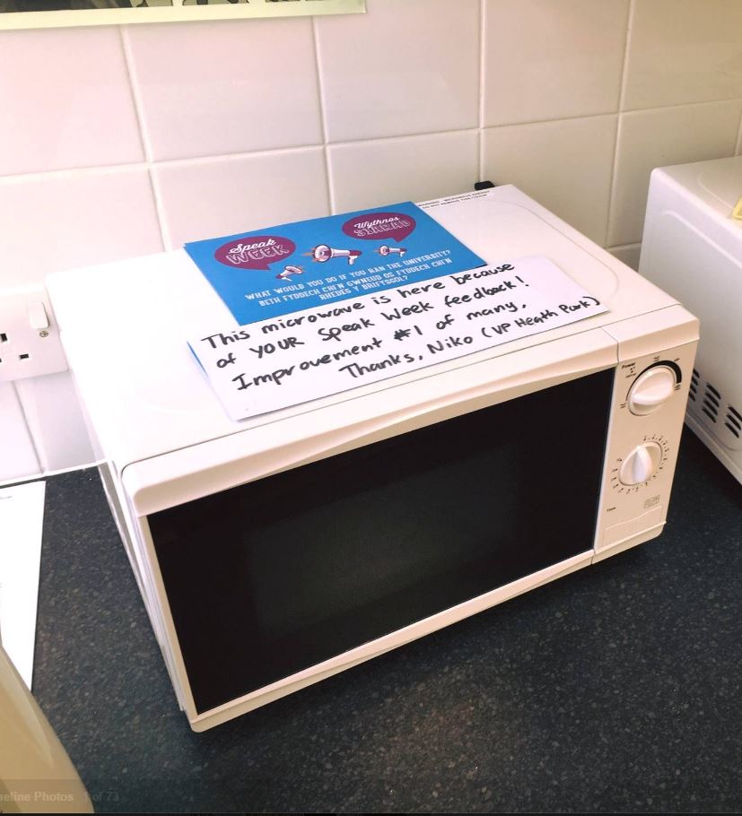 - Students at our Heath Park Campus fed back that the cost of food is high in refectories and cafes there. In response to this and in an effort to increase accessibility, the Students’ Union has provided microwaves around the campus to allow students to bring their own food and heat it up rather than buying ready-made food on site.