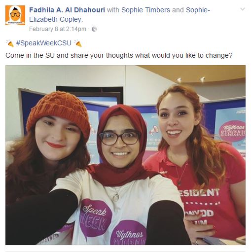 - To successfully lobby the University to make changes based on student feedback from Speak Week 2016.