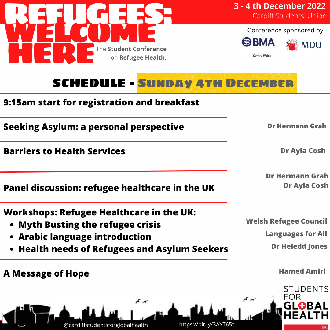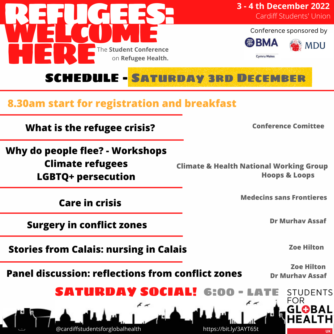 Our conference - Refugees Welcome Here - will highlight the different aspects of the refugee journey whilst aiming to educate attendees on the reasons people flee their homes, the steps in their difficult journeys, and the barriers refugees face to accessing healthcare here in the UK. We have an amazing lineup of speakers and workshops including MSF and the bestselling author Hamed Amiri.
