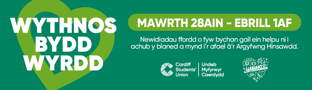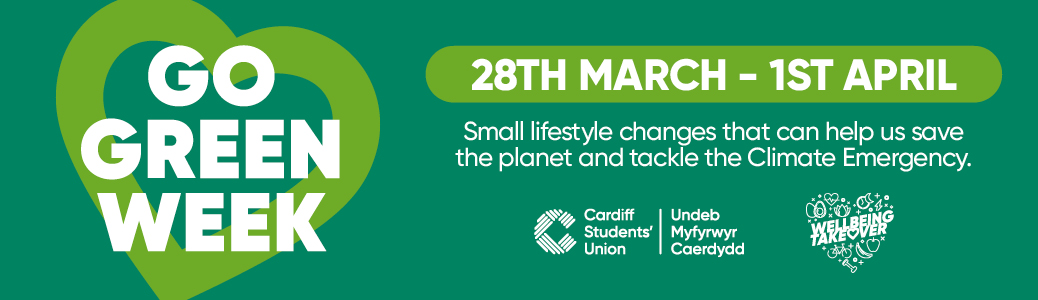 This year’s Go Green Week at Cardiff SU will focus on small lifestyle changes that can make a big impact on the environment. Check out all the different activities taking places and other useful resources below!