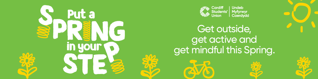 Being mindful and relaxing helps us to stay healthy, incorporating activities to help us wind down after a long day of lectures, revision or placement and is essential for our physical and mental health. We will be promoting activities for mindfulness and relaxation during the last week of Spring in Your Step and will also be handing our wellbeing packs. If you are not able to come along to the stalls but would like one, please e-mail vpheathpark@cardiff.ac.uk or vpsport@cardiff.ac.uk.