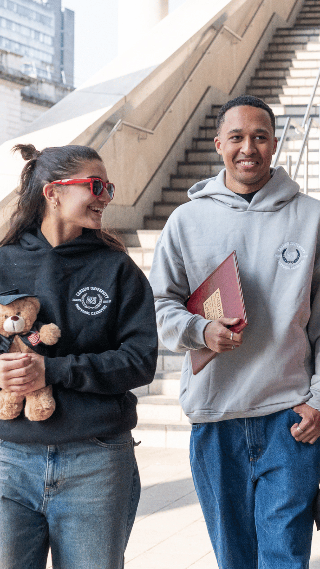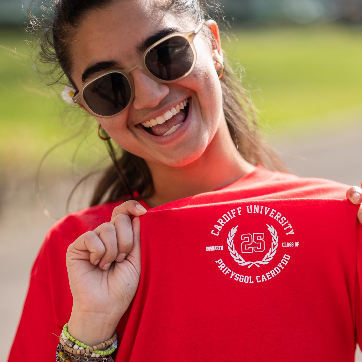 I'ch helpu i nodi'r achlysur, bydd gan Caru Caerdydd dillad a rhoddion Prifysgol Caerdydd, cyfres graddio, a hwdi Dosbarth 2025 arbennig gyda'r opsiwn i bersonoli.