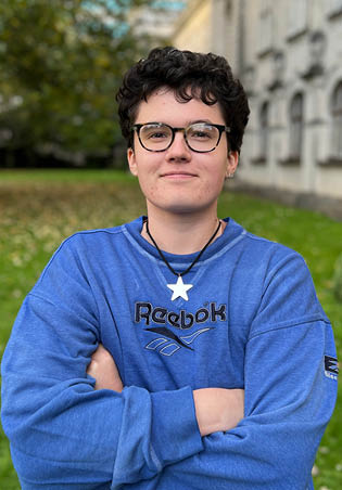 AJ ydw i ac rydw i’n un o’ch swyddogion LHDTC+ etholedig. Rydw i wedi bod yn aelod gweithredol o’r gymuned ers i mi ddechrau ym Mhrifysgol Caerdydd ac rydw i’n gyffrous i weithio gyda myfyrwyr, Matilda, a’r swyddogion eraill eleni.